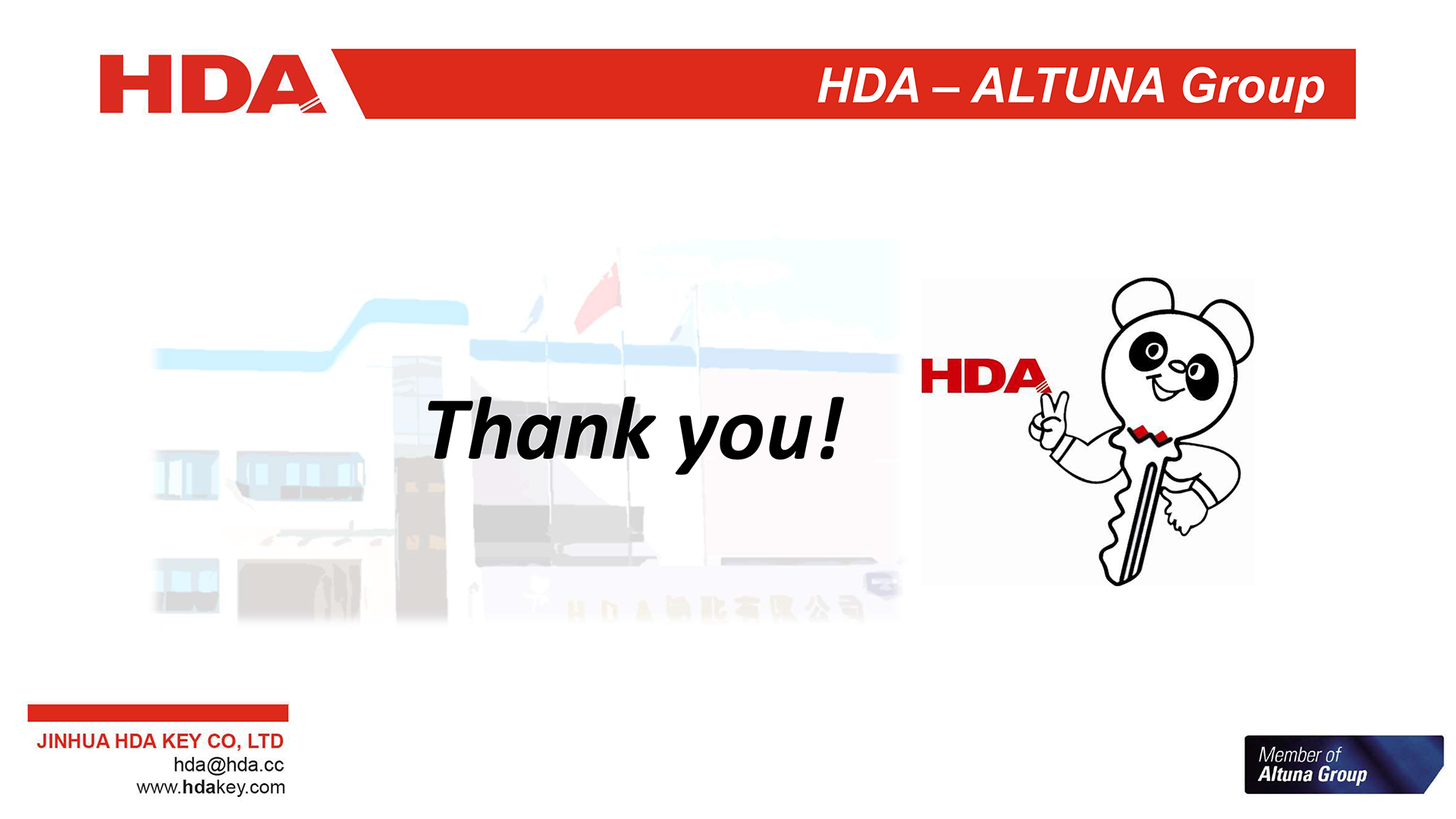 2005年,與歐洲三大鑰匙坯生產企業之一的西班牙JMA集團成立合資公司--金華HDA鑰匙有限公司。 2007年,轉為西班牙JMA集團獨資子公司。